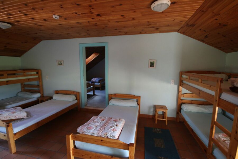 Upstairs: 1 x 10-bed bedroom with bathroom (2 showers / 2WC); 1 x 6-bed bedroom with bathroom; 1 x 4-bed bedroom with bathroom/WC; 1 x 6-bed bedroom and 1 x 5-bed bedroom with bathroom/WC each; 1 double-bed bedroom with bathroom.