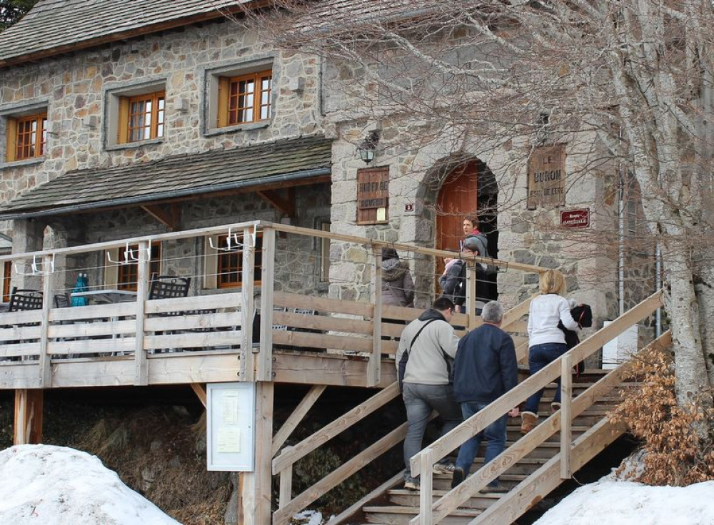 Traditional stone inn, rustic setting with fireplace and large terrace. Traditional cuisine and Auvergne specialities: truffade, chou farçi, pounti...Traditional cuisine and Auvergne specialities such as truffade, stuffed cabbage, pounti and aligot.