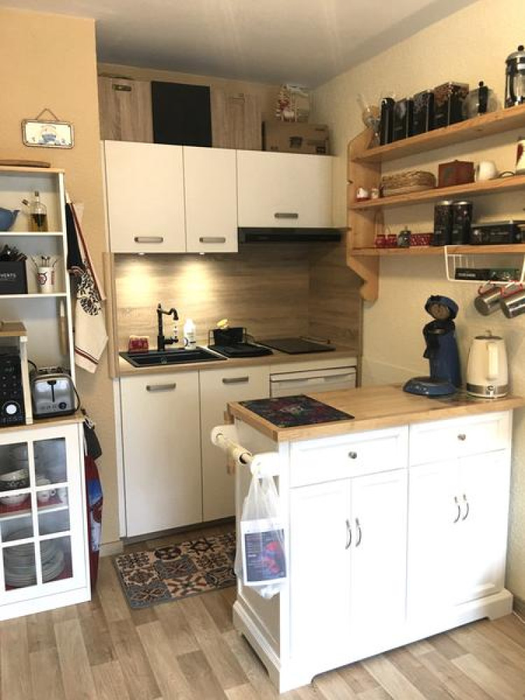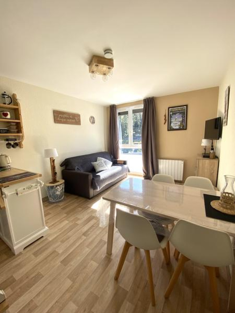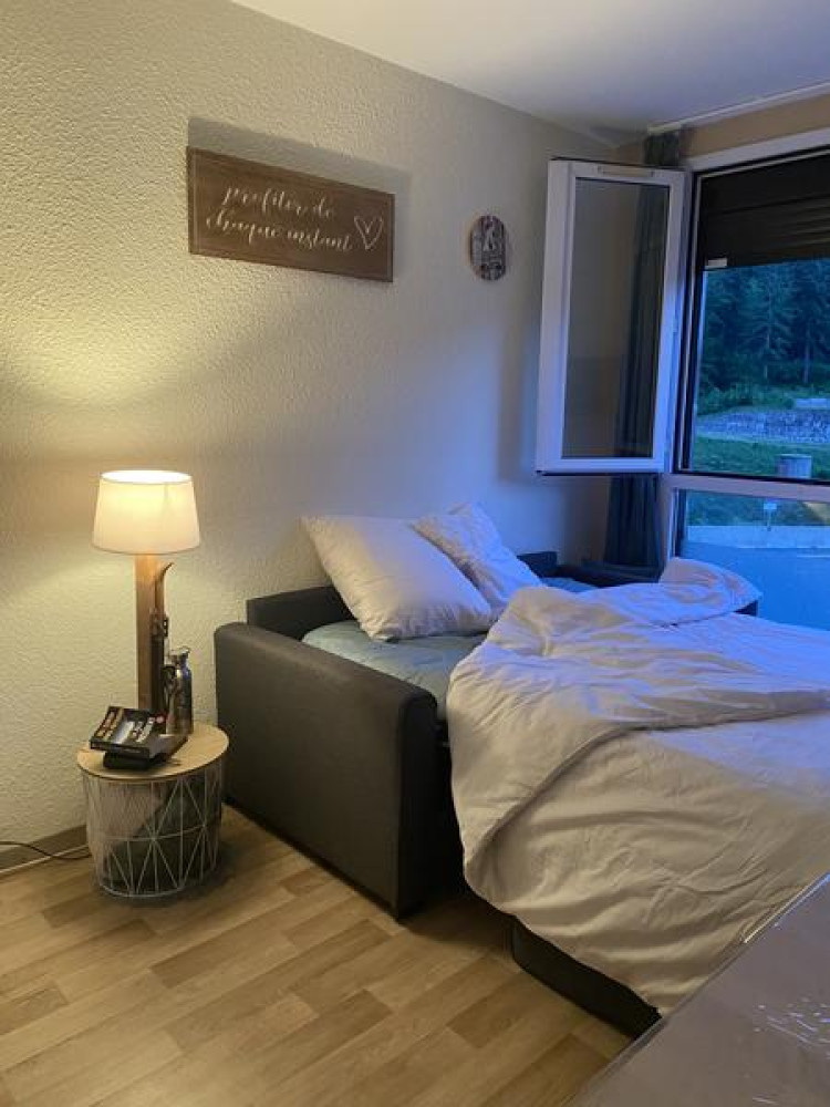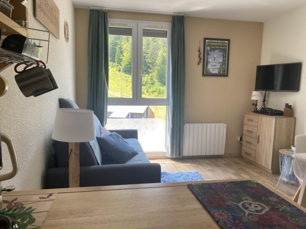 Studio de 28 m2, exposition sud, en face du télésiège de Masseboeuf à Font d'Alagnon, au départ des randonnées Un canapé convertible en 140 et coin montagne avec 2 lits 90 superposés, WC et SDB séparés. Parking privé derrière la résidence