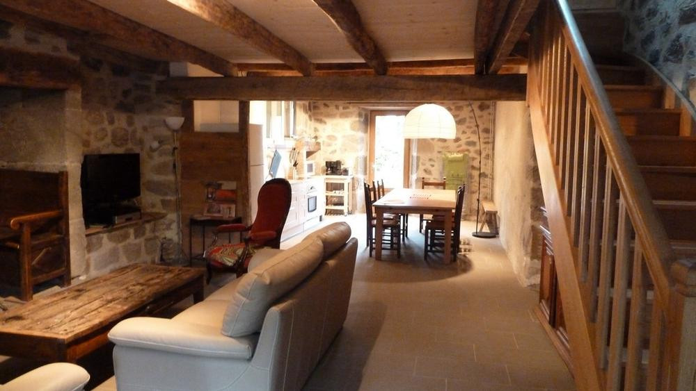 Au coeur du Parc des Volcans, belle maison de caractère dominant une vallée, restaurée avec beaucoup de charme dans le respect de la pierre et des bois anciens, comprenant 2 gîtes mitoyens de 6 et 4 pers.Cheminée, cuisine équipée, salon, 3 chambres, salle d'eau et 2 WC. Au RDC : grand séjour avec cuisine intégrée, grande salle à manger, salon avec cheminée. Buanderie avec WC. A l'étage 2 chambres avec lit 140, salle d'eau, WC. Sous les combles chambre avec 2 lits 90.