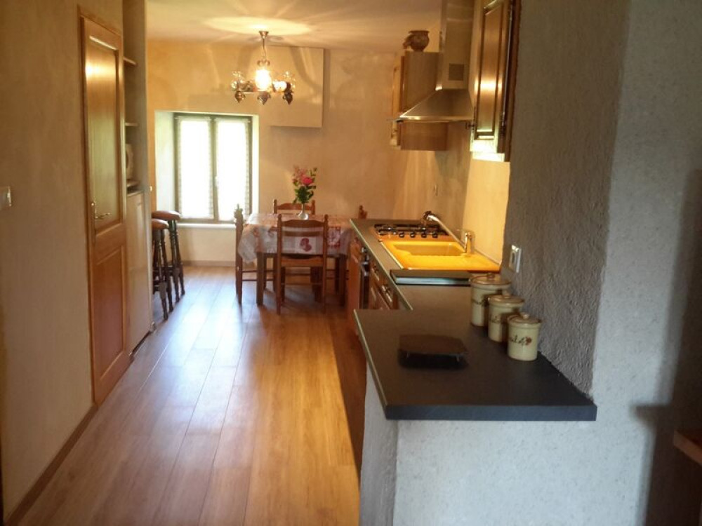 Dans joli village verdoyant et calme, entre Aurillac et le Lioran, proche de toutes commodités (1 km commerces, piscine, parc, mini-golf, gare), gite entièrement rénové.Location composée d'une grand pièce à vivre avec cheminée (bois fourni), convertible 2 pers., cuisine entièrement équipée avec coin repas et bar, 1 wc, à l'étage, salle d'eau, wc indépendant, 1 chambre avec 1L, 1 ch. avec 2 lits.