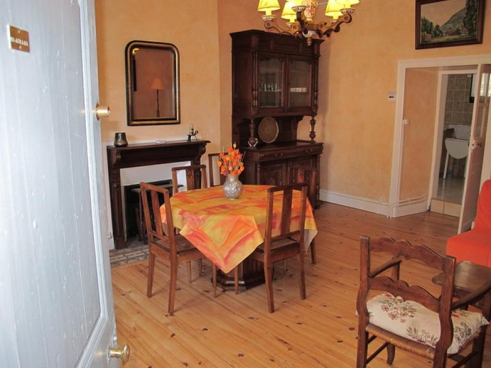 Appartement sur 2 niveaux dans maison historique du 16ème siècle au coeur du village, à proximité de tous services, commerces et activités.1er étage: Grand séjour avec canapé convertible, télévision + lecteur DVD. Cuisine indépendante: four, plaque de cuisson, réfrigérateur avec compartiment congélateur. Lave-linge. Cour intérieure de 20m² avec salon de jardin + petit barbecue.