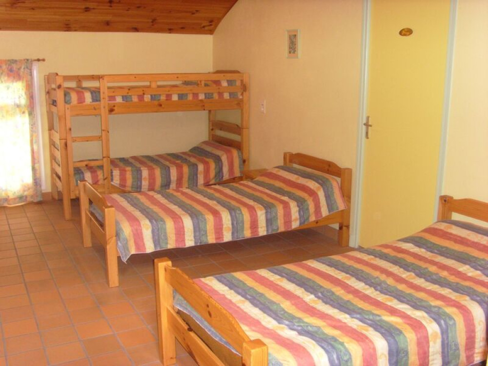 A l’étage : 1 chambre de 10 lits avec salle de bains (2 douches / 2WC); 1 chambre de 6 lits avec salle de bains ; 1 chambre de 4 lits avec salle de bains/WC ; 1 chambre de 6 lits et 1 chambre de 5 lits avec salle de bains/WC chacune ; 1 chambre avec un lit double avec salle de bains.