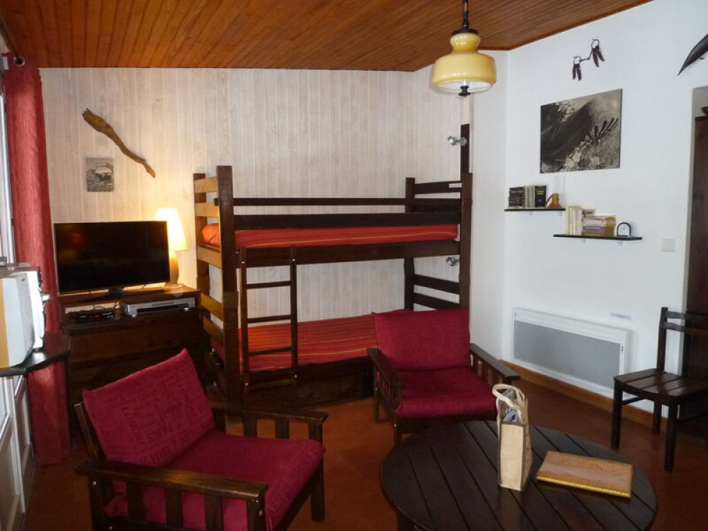Au 1er et seul étage d'un petit immeuble comprenant 8 appartements. Exposition plein sud. Balcon 7m², à 200m des pistes et de 2 télésièges. Point de départ de nombreuses randonnées pédestres.Décor chaleureux et confortable. 1 clic clac 140, 2 lits 80 sup.