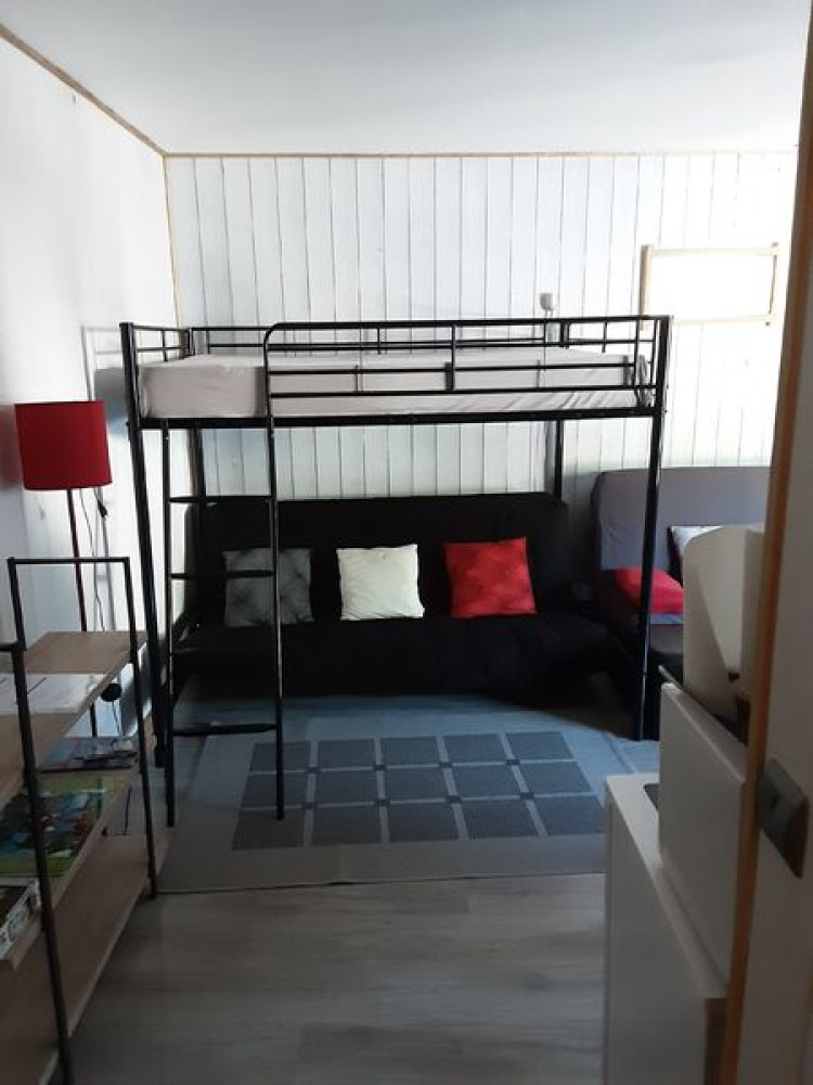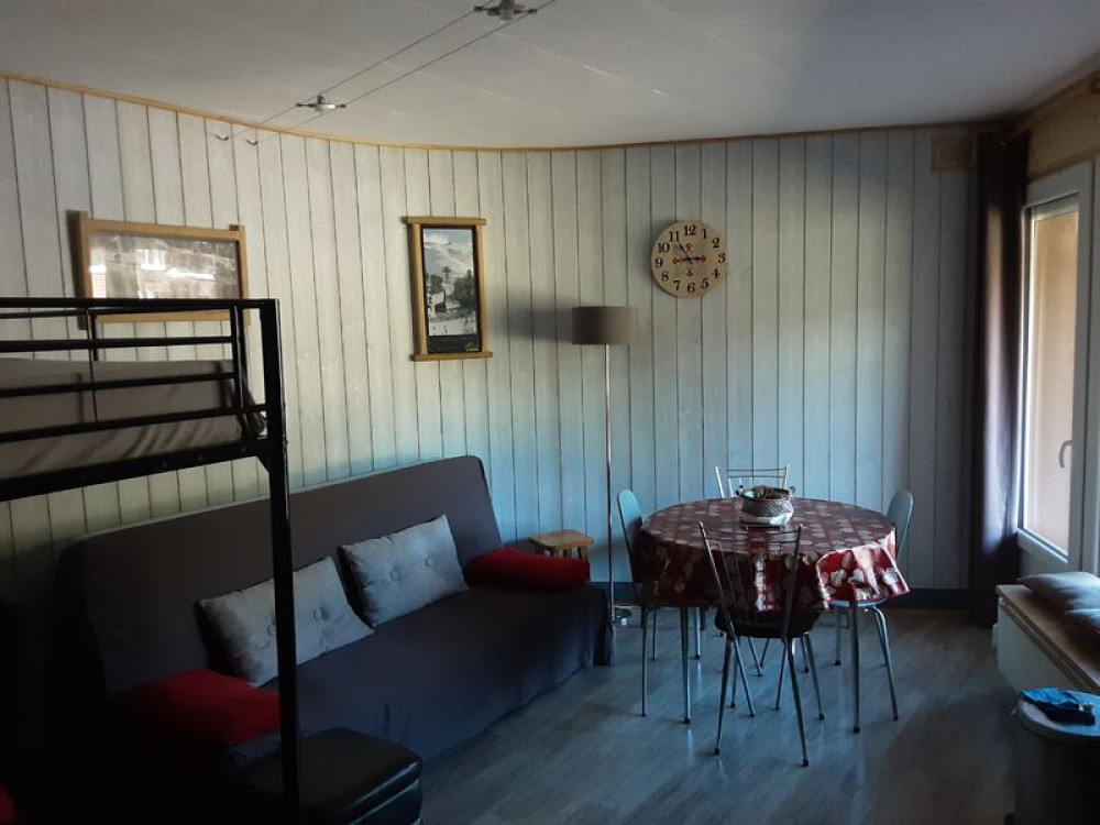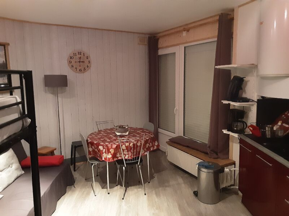Studio de 28m2, avec balcon sud est, vue sur les pistes. Accès direct tous commerces.Studio pour 6 personnes avec 1 cuisine équipée, 1 pièce de 28m2 comprenant 1 canapé convertible 140, 1 lit superposé 140 en bas et 140 au dessus.